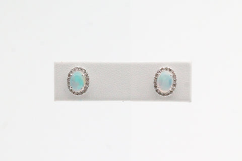 White Gold Oval Opal Halo Earrings