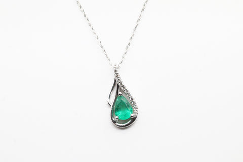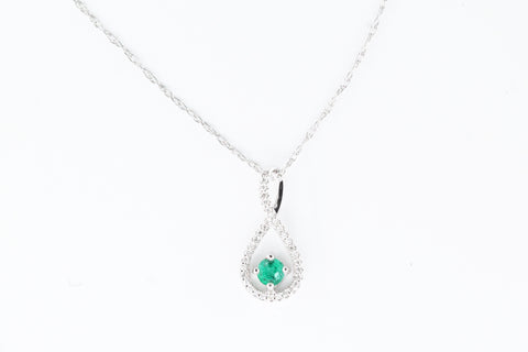 White Gold Emerald and Diamond Twisty Pendant with Chain