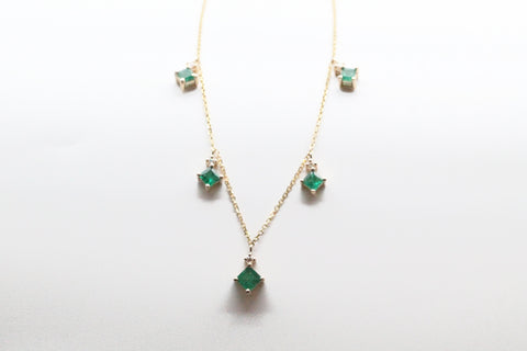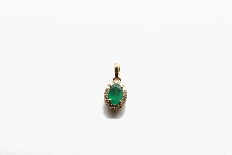 • Yellow Gold Emerald with Diamond Halo Pendant