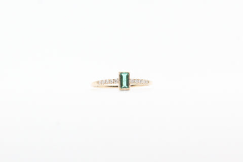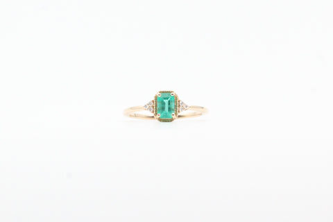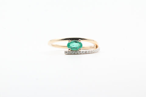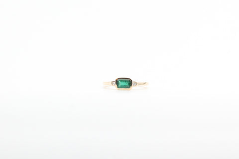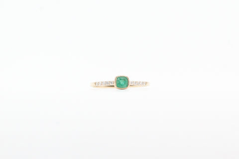 • Yellow Gold Bezel Emerald and Diamond Ring