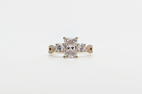 Yellow Gold Radiant Lab Grown Diamond Three Stone Twist Engagement Ring