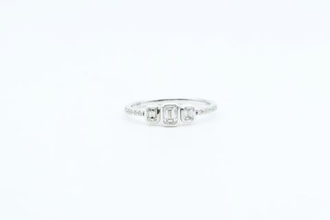 White Gold Three Stone Bezel Engagement Ring