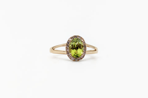 This ring features 14k yellow gold and three stunning Ethiopian opals. The sparkle of diamond accents between the stones adds a touch of luxury. Approximate size: 7